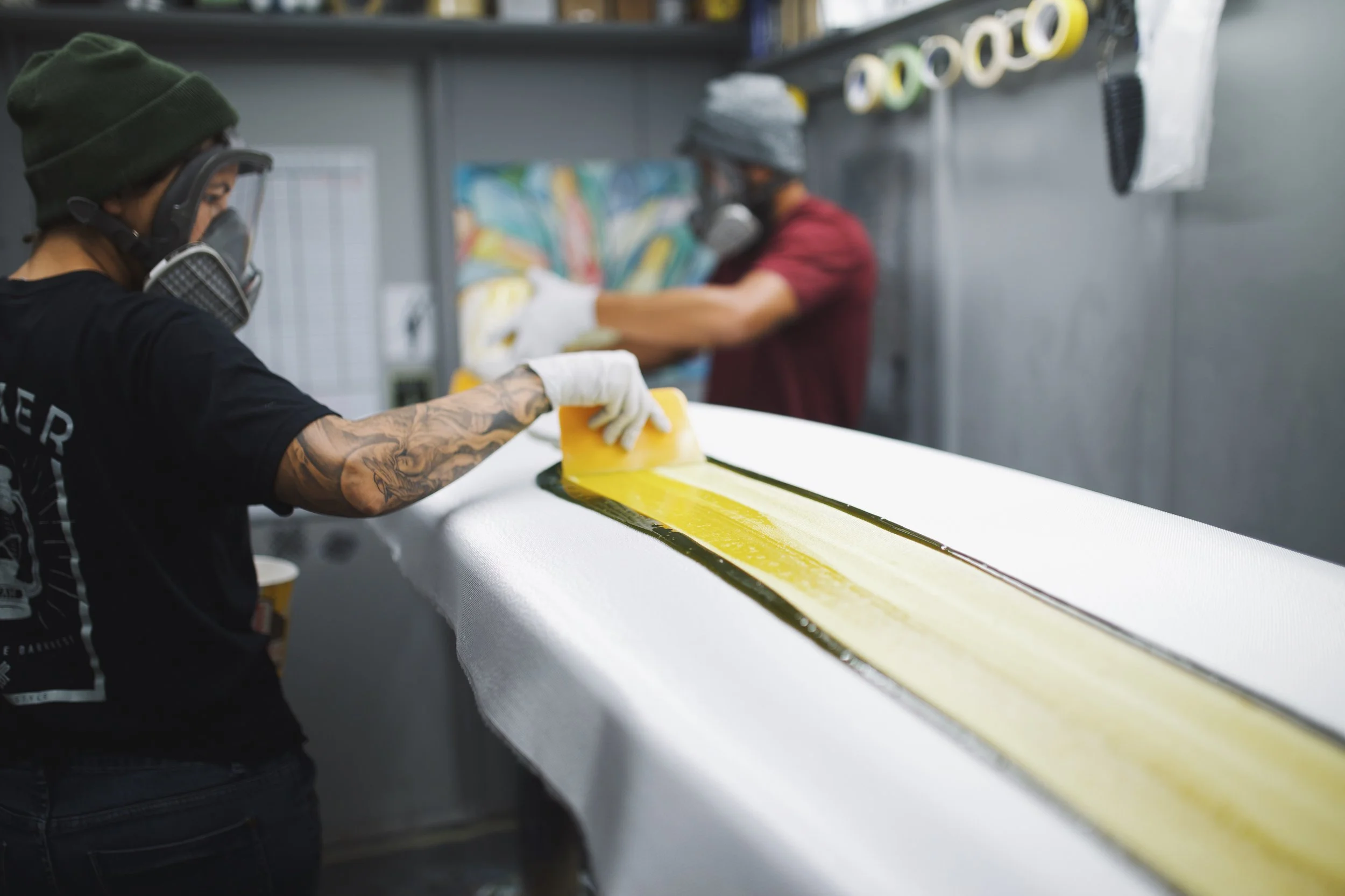 Tiana brings each board to life through resin tints and custom fabric inlays, adding character and individuality to every build.